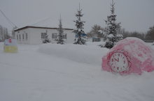 На территории школы из снега выросли сказочный лес, избушка и новогодние часы. Природа- матушка в этом году не пожалела снега.Все ждут долгожданный волшебный праздник.