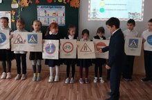 На улице много дорожных знаков. Дорожные знаки - лучшие друзья водителей и пешеходов.Дорожный язык — это особые знаки разной формы и цвета, которые сообщают водителям и пешеходам важнейшую информацию. Дорожные знаки делятся на группы, объединяя их содержанием. Командир отряда ЮИД " Светофор" Абраров А.Р. рассказал про знаки дорожного движения. Смотрели презентацию "Дорожные знаки " и видеоролик "ПДД для пешеходов".