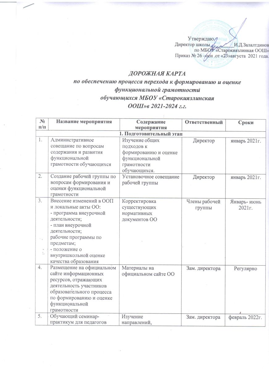 по обеспечению процесса перехода к формированию и оценке функциональной грамотности