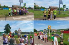 В лагере активисты отряда ЮИД вместе с воспитателями Андрияновой О.Е.,Мифтаховой Г.З.,Сайфутдиновой Г.М. провели мероприятие по безопасности ДД.
