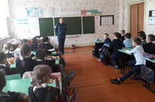 Начальник отдельного поста по охране пос.МЮД Ягудкин Е.Ф.среди учащихся начального звена провёл урок безопасности.