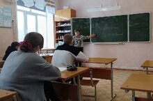 В соответствии с планом работы на месяц, проходит посещение уроков. Урок обществознание в 10 -ом классе проводит учитель истории Бикулов М.П.