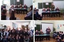 Урок Мужества среди учащихся 7 - 10 классов провели Сахабутдинов Шамиль Имамутдинович,председатель Совета ветеранов МВД РФ по Аксубаевскому району, майор милиции в оставке;Вафин Ильхам Исламович, заместитель председателя Совета ветеранов , майор милиции в отставке; Крайнов Владимир Фёдорович,председатель ветеранов боевых действий в Афганистане, подполковник в отставке;Прончатов Николай Иванович,председатель Союза ветеранов военно - морского флота в Аксубаевском районе.