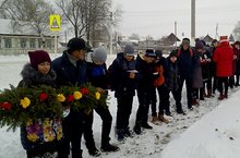 Учащиеся школы - участники мероприятия "О героях былых времён".Ребята прочитали стихи...в заключении возложили цветы у обелиска.