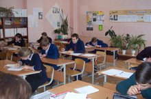 Учащиеся 11 класса решают пробный ОГЭ по русскому языку.