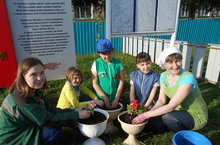 Под руководством учителя татарского языка и литературы Шарафутдиновой Гузель Фасхетдиновны учащиеся школы посадили цветы у памятника в деревне Татарское Сунчелеево.
