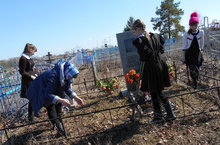 Учащиеся школы ухаживают за могилой воина-афганца Вячеслава Фролова.