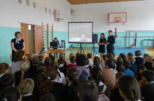 Прошла литературно-музыкальная композиция, посвященная 55-летию полета Юрия Алексеевича Гагарина в космос. Ведущие: Артем Малецков и Регина Имамутдинова, учащиеся 10 "а" класса.