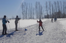 В школе проходят лыжные соревнования. Учителя: Раис Мурзаевич и Фархад Габдуллович.