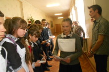 Единый телефон доверия 16.05.2015 На построении учащимся школы раздали буклеты "Единый телефон доверия"