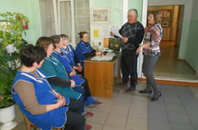 Завхоз Павлов Леонид Юриевич проводит учебу среди работников школы по профилактике экстремизма и терроризма.