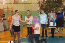 Вместе со Снегурочкой и множеством гостей.Учащиеся 5-7 классов порадовали выступлениями гостей. Отличникам , хорошистам, призерам олимпиад были вручены грамоты и подарки.