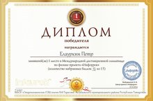 6 учащихся приняли участие в дистанционной олимпиаде по физике "Инфоурок". Диплом 1 степени вручен Елауркину Петру (7класс), диплом 2 степени- Гильфановой Фирдаус (7класс), диплом 3 степени - Фроловой Элине (7класс). Подготовил учащихся учитель физики Гаврилов Николай Иванович.