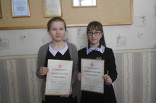 Учащиеся школы, члены кружка "ЮИД" Наумова К.- 4 а класс, Сухалова А. - 4 а класс,Кузьмин Р. - 5а класс - обладатели Дипломов победителей Всероссийского конкурса рисунков и поделок, посвящённого безопасности дорожного движения "Мир дорожных знаков".