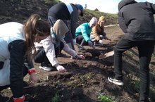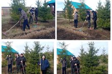 Учащиеся школы - участники трудового десанта по посадке саженцев.