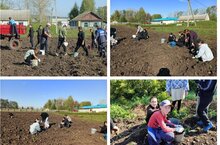 Учащиеся школы с большим удовольствием работают на пришкольном участке...убирают выращенный урожай...