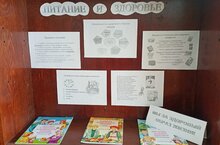 Библиотекарь школы Портнова Г.А.вместе с читателями в рамках проведения Недели школьного питания оформили информационный стенд в библиотеке "Правильное питание -залог здоровья!"