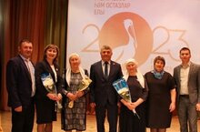 На празднике приветствовали педагогическую династию из нашей школы Баймухаметовых- Шарафутдиновых , их общий педагогический стаж - 173 года.Желаем коллегам всего самого доброго!