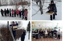 Традиционно в школе среди учащихся начального звена проходит экологическая акция "Каждой пичужке - наша кормушка!".Учащиеся 1 класса вместе с родителями смастерили прекрасные кормушки для птиц..., а ребята вместе с классным руководителем Мифтаховой Г.З. и завхозом школы Сибгатуллиным И.Ф. развесили кормушки на деревья. Участники акции выразили заботливое отношение к птицам!