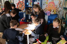 Учащиеся заранее готовились ко Дню космонавтики: начальные классы делали аппликации, рисовали рисунки; среднее звено провело конкурс плакатов "Моя родина. Вид с космоса". Сегодня, 12 апреля, им продемонстрировали видеофильм "Гагарин. "Поехали!""