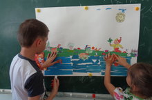 В волшебный мир сказки окунулись ребята пришкольного лагеря "Солнышко". Театрализованные представления, загадки, ребусы, конкурсы рисунков, коллективная аппликация-целый день наполнен чудными мгновениями.