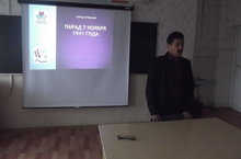 Урок мужества прошёл в 10-11 классе. Учитель ОБЖ Львов Н.Д. рассказал детям о параде , который прошёл 7 ноября 1941 года в Самаре.