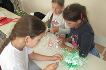Сегодня дети из разного материала делали разные поделки и оформили выставку своих работ. В ходе трудовой деятельности у детей развиваются такие как: взаимопомощь, трудолюбие, выдержка, умение довести начатое дело до конца.