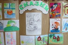Педагог дополнительного образования Енизеркина О.С. организовала выставку работ своих учащихся на тему "Сказки".