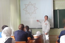 Ученица 8Б класса Муратшина Лейля летом отдыхала в лагере «Сәләт». 18 сентября в числе самых активных участников ей посчастливилось присутствовать на инаугурации Президента Республики Татарстан Рустама Минниханова. На классном часе Лейля поделилась своими впечатлениями.