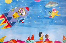 Учащиеся начального звена Лимонов Кирилл и Хуснуллина Алсу 4 "А" кл, Зайнуллина Диана 3 "А" кл. приняли участие в республиканском конкурсе рисунков "Наши друзья-космонавты".