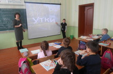 Второй день Недели начальных классов – день Русского языка – прошёл под девизом «Думай, проверяй, пиши». День начался с конкурса «Король каллиграфии». В каждом классе были выбраны лучшие работы в номинации «Каллиграфия» и «Безошибочное письмо». Во 2Б классе (Низаева Э.М.) прошёл открытый урок развития речи «Обучающее изложение «Утки». В занимательной форме с использованием ИКТ дети учились грамотно излагать свои мысли, составлять красивые предложения. В уроки русского языка во всех классах были включены грамматические кроссворды и ребусы. Первоклашки готовятся к проводам Азбуки, учат русский алфавит.