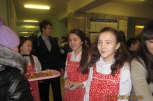 Первый день Недели русского языка прошел очень интересно. В рекриациях школы на переменах звучала музыка. Девушки в русских народных костюмах встречали у входа учащихся и учителей и просили рассказать четверостишие или спеть русскую народную песню. Наградой были пряники, сушки и конфеты.