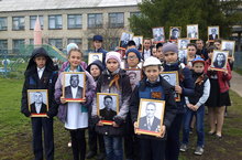 По главной улице села в День Победы прошел Бессмертный полк. Школьники несли фотографии своих дедов и прадедов, погибших в годы Великой Отечественной войны .