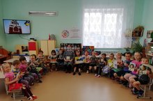«Аксубай районы буенча 102 нче Федераль янгынга каршы хезмәте» ФДКУ бүлекчә командиры Васюткин с.Г. белән коткаручы балалар белән өйдә куркынычсызлык кагыйдәләре, янгын килеп чыгу сәбәпләре турында әңгәмә корды, янгын чыккан очракта гамәлләр тәртибе турында сөйләштеләр. Моннан тыш, балаларга үзенең эше турында , янгын сагын ничек дөрес һәм нинди номерлар буенча чакыртырга кирәклеге турында сөйләде.