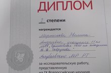 Дипломом I степени награждена ученица 11 класса Мартынова Эвелина за исследовательскую работу, представленную на IX Всероссийскую научную конференцию-конкурс учащихся имени Льва Толстого. Очный тур конкурса состоялся 6 декабря. Организаторами стали Министерство образования и науки РТ и Институт филологии и межкультурной коммуникации КФУ. Поздравляем Эвелину и учителя-наставника Матюкову Наталью Никоноровну! Новых побед впереди!
