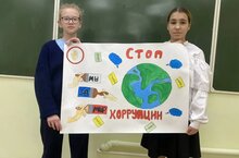 Ученики пятого класса разработали плакат "Стоп коррупции", целью которого стало привлечение внимания к проблеме коррупции и ее предотвращение.