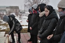 Возле памятника в центре села учащиеся почтили память погибших минутой молчания и зажгли Свечи памяти.
