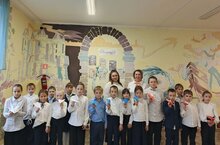 День народного единства 24.10.2025 4 ноября в России празднуют День народного единства. Это торжество напоминает о важности сплочённости и единства. Праздник особенно важен для детей, ведь они должны с ранних лет понимать его значение. День народного единства символизирует не только исторические события, но и силу коллективного духа, способного преодолеть любые трудности. Для младших школьников организовали мероприятие, посвящённое этому празднику. Оно прошло в формате путешествия по разным регионам России. Дети узнали о происхождении Дня народного единства, подвигах предков и величии страны. Они познакомились с историей России, её символами, культурой, традициями, народными играми и кухней. Мероприятие показало детям, что мир и дружба — основа нашего общества. С детства нужно быть дружными и уважать друг друга, ведь все мы — дети одной Родины — России.