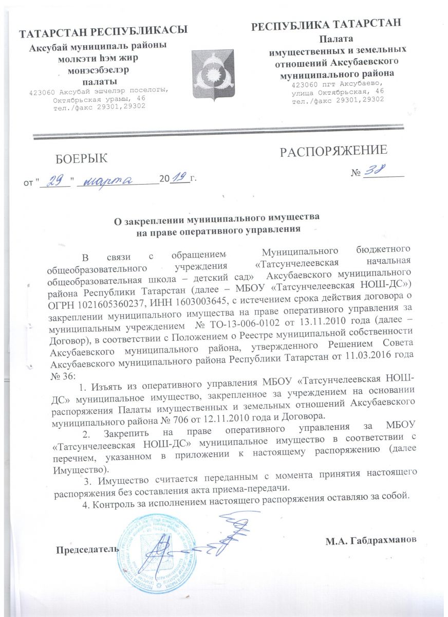 ♦ Распоряжение о закреплении муниципального имущества 2019год