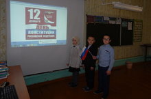 Бүген безнең мәктәптә шушы уңайдан махсус тәрбия сәгате үткәрелде. Укучыларга Конституция, закон, гражданин төшенчәләре турында белешмә бирелде. Россия Конституциясе, тарихы, аның эчтәлеге, кешеләрнең хокуклары, бурычлары аңлатылды. Дәүләт символлары (герб, флаг, гимн) искә төшерелде. Укучыларда патриотизм, туган илне ярату хисләре тәрбияләү максатыннан Россия Федерациясе гимны тыңлатылды. -