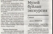 08 мая 2024 года в № 18 районной газеты «Актаныш таннары» был опубликован рассказ ученика 8 класса МБОУ «Аккузовская ООШ» Ахметова Даниса «Музей буйлап экскурсия»//