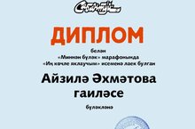 Ученица 9 класса МБОУ «Аккузовская ООШ» Айзиля Ахметова стала победителем в номинации «Иң көчле яклаучым» в марафоне журнала «Сабантуй» «МИННӘН БҮЛӘК», посвященном Дню защитника Отечества. Айзиле был вручен Диплом и памятный подарок от журнала «Сабантуй». Руководитель Ахметова Чулпан Инсафовна.