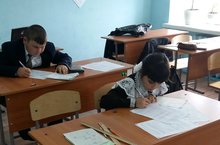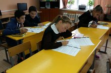 Укучылар инглиз теле фәненнән олимпиада биремнәре үтиләр.
