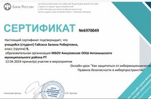 2024 елның 12 апрелендә Аккүз төп гомуми белем бирү мәктәбенең 9 сыйныф укучылары өчен «Кибермошенничестводан ничек сакланырга. Кибер киңлектә куркынычсызлык кагыйдәләре» дигән темага РФ Үзәк банкы тарафыннан онлайн-дәрес уздырылды. Дәрестә укучылар электрон почта, банк карталары белән эшләү кагыйдәләре турында файдалы мәгълүмат алдылар. Дәрес барышында укучылар Интернетта үзләрен ничек якларга һәм интернет аша сатып алулар буенча файдалы җаваплар алдылар. Шулай ук укучылар карта номерын һәм ПИН-кодларны сер итеп сакларга кирәклеген төшенделәр. Дәреснең үзенчәлеге булып укучыларның финанс базары өлкәсендә профессионаллар белән турыдан – туры аралашуы иде.