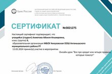 Безнең мәктәп укучылары «Максатка ирешергә ярдәм итәчәк кредит яки дүрт кагыйдә турында» онлайн финанс грамоталылык дәресендә катнаштылар. Укучыларны кредит төрләре, кредит шартлары һәм кредитны ничек дөрес алырга кызыксындырды. Укучылар кредит килешүләренең барлык нечкәлекләрен һәм килешү төзегәндә нәрсәләргә игътибар итәргә кирәклеген белделәр. Алар кредит түләү мөмкинлеге булмаган очракта нәрсә эшләргә һәм кредит бирүнең төп кагыйдәләре турында белделәр. Дәрес укучылар өчен файдалы булды.