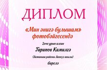 По итогам фотоконкурса «Я помогаю маме», организованного детской газетой «Көмеш кыңгырау» г. Набережные Челны, ученик 4 класса МБОУ «Аккузовская ООШ» Гарипов Камиль занял 2 место. Он получил диплом и памятную подарок. Руководитель: Гарипова Р. Д. Поздравляем!///