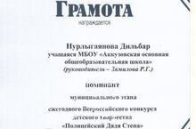 4 мая 2022 года проведен муниципальный этап ежегодного Всероссийского конкурса детского творчество «Полицейский Дядя Степа». В конкурсе участвовали 25 учащихся. В соответствии протоколами жюри ученица 5 класса Нурлыгаянова Дильбар стала победителем в номинации. Руководитель: Зямилова Р.Г. Поздравляем!///