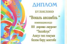 4 марта 2022 года в РДК с. Актаныш состоялся гала-концерт фестиваля "Йолдызлык - 2022". По итогам конкурса в номинации «Вокальные ансамбли» наша школа награждена дипломом лауреата 3 степени. Поздравляем!///