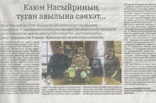 11 марта 2022 года в № 9 районной газеты «Актаныш таннары» был напечатан рассказ «Каюм Насыйриның туган авылына сәяхәт» ученицы 7 класса Шайдуллиной И.//