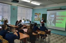 15 февраля 2022 года в школе проведена Акция, посвященная творчеству поэта-героя М.Джалиля. В рамках мероприятий, посвященных дню рождения поэта, Героя Советского Союза Мусы Джалиля, в нашей школе прошли классные часы, на которых классные руководители рассказывали учащимся о непростой биографии поэта, о его творчестве, просматривались и обсуждались документальные фильмы о поэте-герое и его знаменитой "Моабитской тетради". В библиотеке школы была организована поэтическая гостиная " Литературный факт" и выставка книг Мусы Джалиля. Из слайд-презентации "Герой шагыйрь- Муса Жэлил" ребята узнали о суровых фронтовых буднях поэта, о страшном времени, проведенном в фашистских застенках концлагерей, в которых единственным оружием Мусы Джалиля были его стихи.///